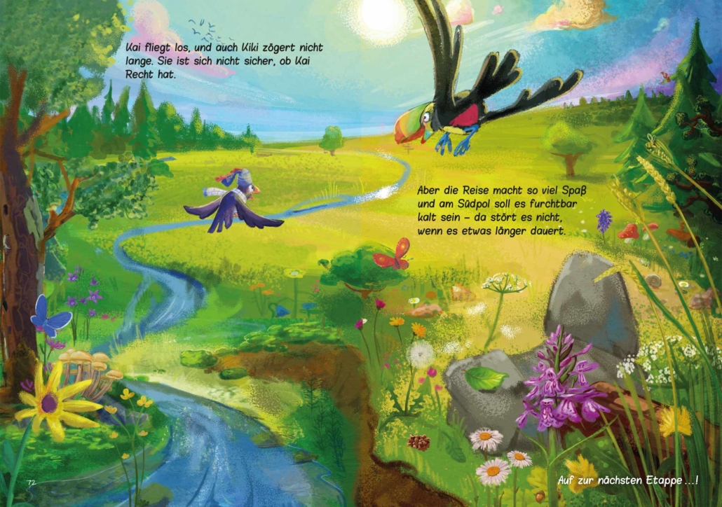 Hoch im Norden beginnt für Kai, die Krähe, eine spannende Reise zum Südpol. Kai ist schlau, aber er muss noch viel lernen. Ein Glück, dass er das freche Tukan-Mädchen Kiki aus einem Zoo befreit! Gemeinsam erleben sie lustige Abenteuer und lernen viel über die Welt. Dabei beweisen sie Mut und Geschick und auch ihre Freundschaft wächst mit jedem Erlebnis.